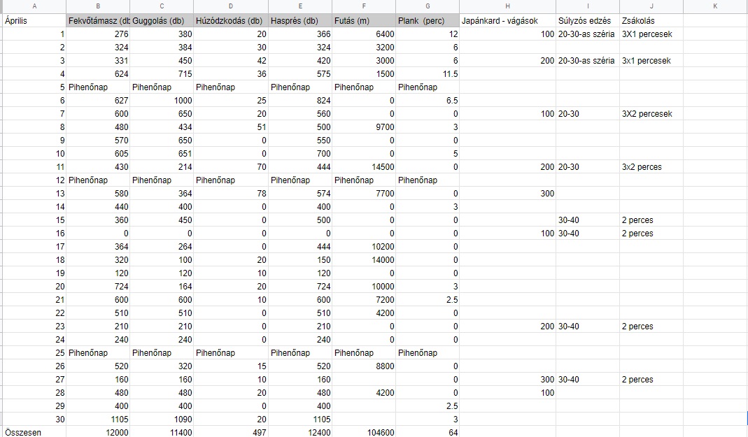 Természetesen voltak kiugró eredmények. Valaki egy hónap alatt 122 km-t futott, vagy valamelyik bajtársunk 1864 húzódzkodást csinált meg egy hónap alatt. Átlagosan napi 300 fekvőtámasz-hasprés és guggolás született, 3 km futással, 40 húzódzkodással, 2-3 percnyni plankkal (természetesen a szabályos végrehajtást és a becsületes számolást is az egyénre bíztuk). Nyerni csak úgy lehetett tehát, ha összességében ezek felett teljesített valaki.