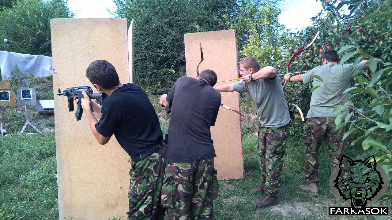 Ezen rövid eszmei tisztázás után néhány képet mutatnánk be: a közösségünk nemcsak a modern fegyverekkel való bánásmódot gyakorolja, hanem egyre sikeresebben kísérletezik a tradicionális fegyverek valódi harci eszközként való alkalmazásával. Például az íj „taktikai” alkalmazása teljes mértékben azonos egy modern fegyver használatával. A különbségek csak a fegyver méreteiből és egyéb technikai eltérésekből adódnak. Például ugyanúgy lehet lőni íjjal gördülőjárásból, fedezékből, mozgófedezékből (pajzsfal – taktikai „swat” pajzs), vagy éppen tűzpárban stb. Nyilván ez is csak forma látszólag, de valljuk, hogy, aki a hagyományos fegyverekkel tud bánni, és gyakorolja ezen fegyverek használatát napi szinten, az nemcsak a modern fegyverekkel eredményesebb, hanem a jelleme is szilárdabb lesz.