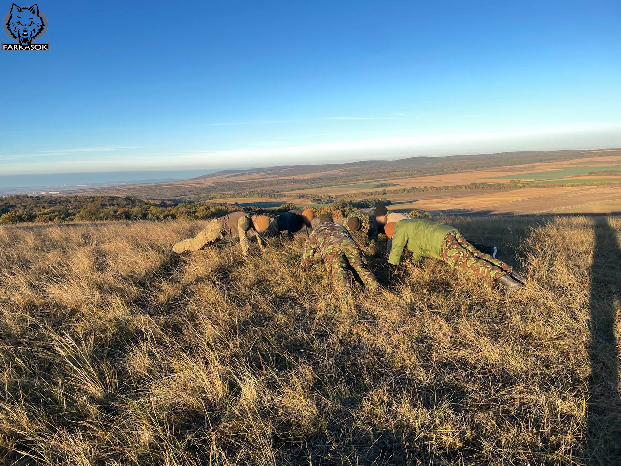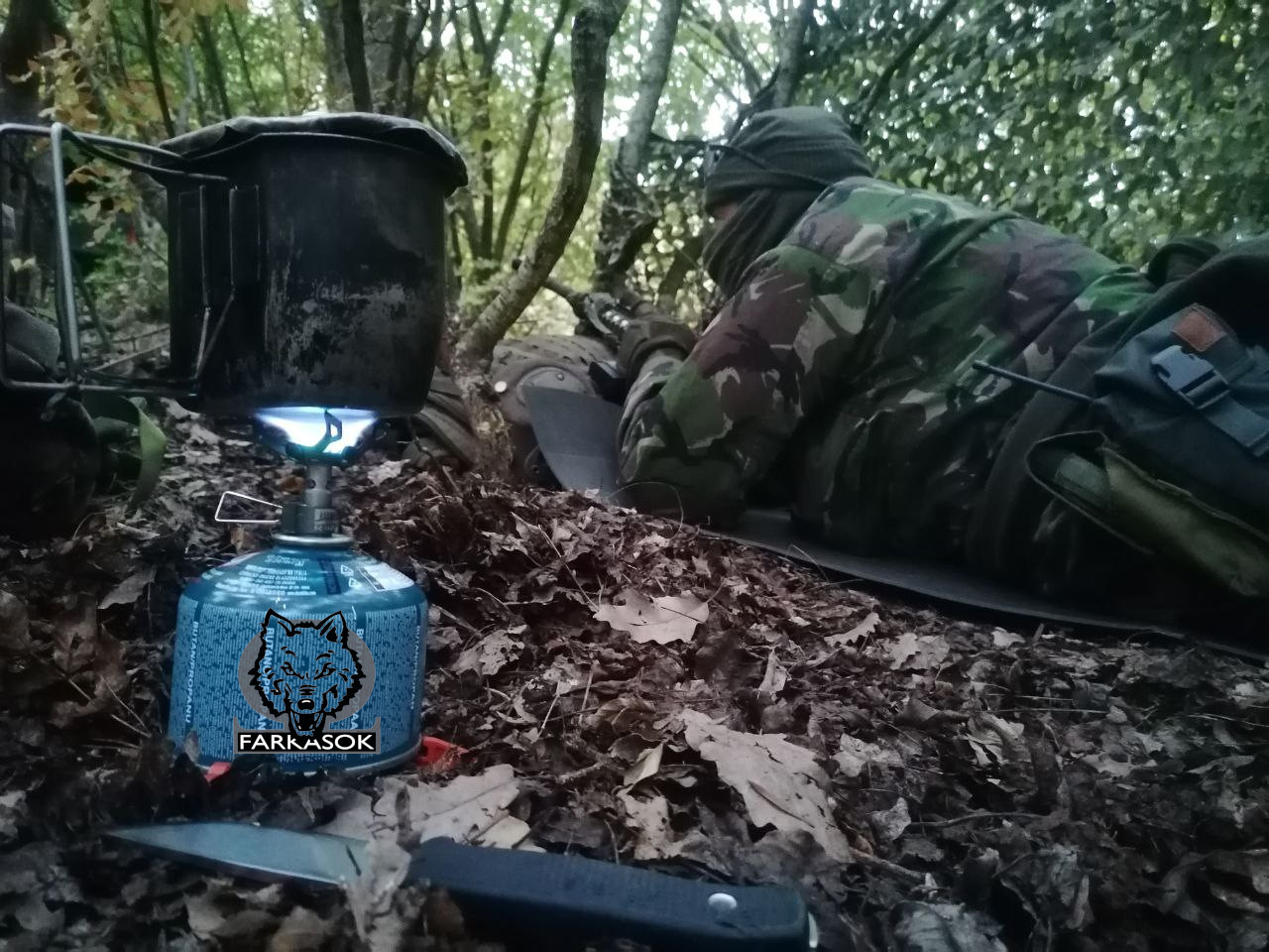 Több napos szimulációt hajtottak végre a Farkasok. Parancsvételezés és közös tervezés után taktikai előrenyomulás „ellenséges terepen”, majd járőrbázis kialakítása és rejtett figyelő építése az ellenséges táborhelyre. Egész napos megfigyelés hang- és fényálcával, illetve szigorú beosztással a járőrbázison is. Tűzgyújtási tilalom és 2 órás „műszakok”. Mire indulhatott az ellenségen a közelfelderítés, addigra a hideg is megérkezett. Ezen a hétvégén fagypontot súroló volt a hőmérséklet, ami az airsoft-fegyverek akkumulátorait is megviselte, ahogy a felkészületlen bajtársakat is. A rajtaütésre való készülődés elűzött minden fáradtságot, majd indult a precíz végrehajtás, ami tanulságokkal teli volt. A vasárnapi reggeli torna után jót falatoztunk, már az ellenerővel együttesen. Kiértékelés után mindenki mehetett pihenni: hosszú 2,5 nap volt.